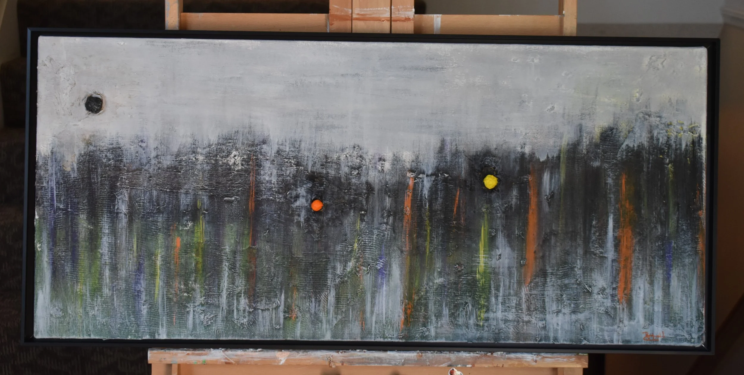 This artwork was created using peeled-back paper as a metaphor for self-discovery-layers revealing what lies beneath. A grayscale surface gives way to bursts of color and textures, symbolizing depth and transformation. The textures throughout are formed entirely from paper, and were manipulated repeatedly during the drying process to achieve their distinctive form